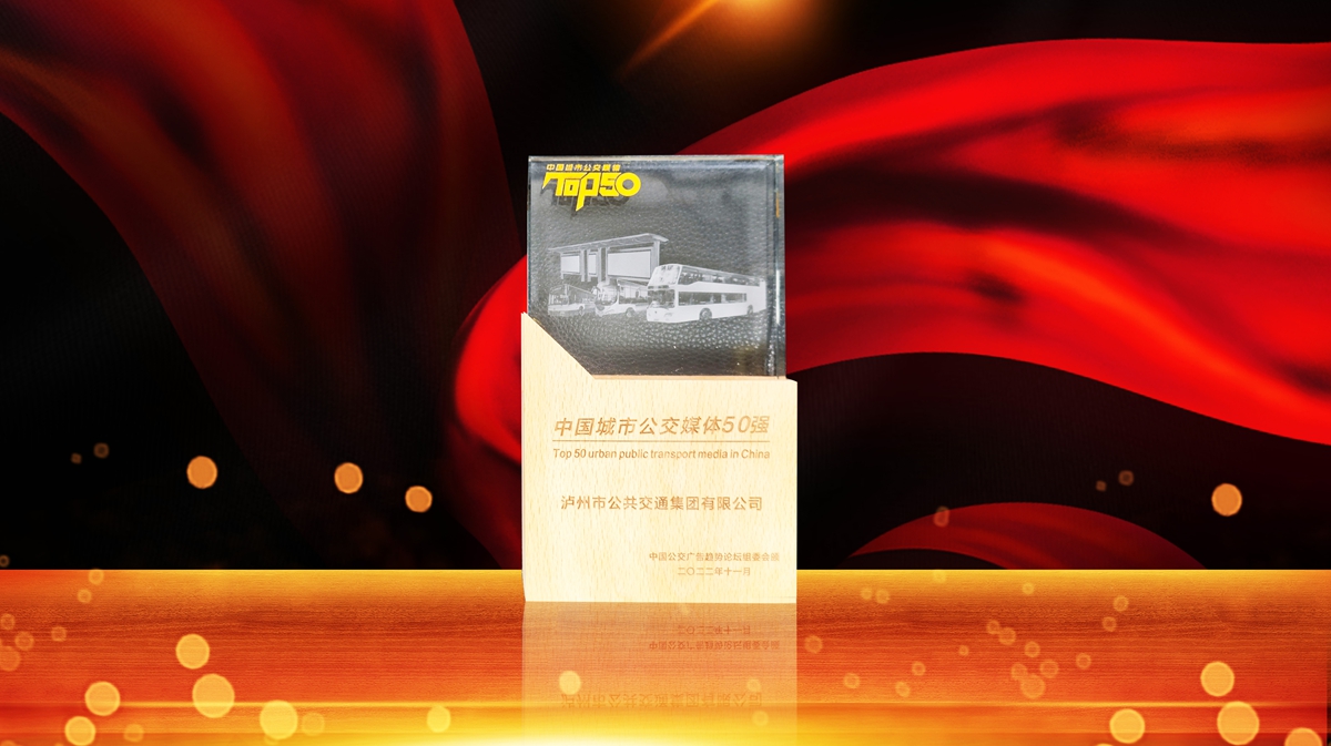 瀘州市公共交通集團(tuán)有限公司巴士廣告分公司(簡(jiǎn)稱(chēng)瀘州公交巴士廣告公司)通過(guò)企業(yè)規(guī)模、創(chuàng)新能力、誠(chéng)信經(jīng)營(yíng)多項(xiàng)評(píng)選標(biāo)準(zhǔn),從全國(guó)參選單位中,經(jīng)過(guò)評(píng)選征集、網(wǎng)上投票、專(zhuān)家評(píng)審等環(huán)節(jié),榮獲“2022城市公交媒體50強(qiáng)”榮譽(yù)稱(chēng)號(hào)。